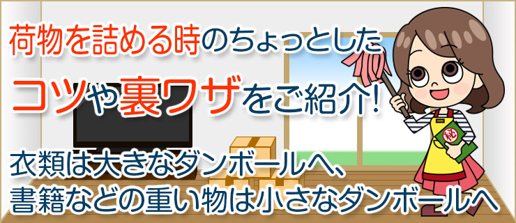 衣類は大きなダンボールへ、書籍などは小さなダンボールへと、荷物を詰める時にはちょっとしたコツがあります。